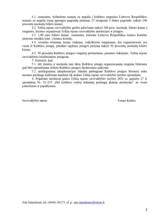Telšių rajono savivaldybės Tryškių kultūros centro teikiamų paslaugų įkainiai